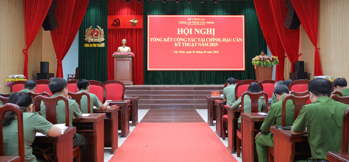 Ngày 03/02/2026, Công an tỉnh tổ chức Hội nghị tổng kết công tác tài chính hậu cần, kỹ thuật năm 2025, triển khai nhiệm vụ công tác năm 2026. Dự và chỉ đạo hội nghị có đồng chí Đại tá Phan Văn Triều - Tỉnh ủy viên, Phó Bí thư Đảng ủy, Phó Giám đốc Công an tỉnh; đại diện lãnh đạo các đơn vị. Hội nghị được tổ chức với hình thức trực tiếp kết hợp với trực tuyến đến 22 điểm cầu tại Công an các xã, phường, Đồn Công an tỉnh.