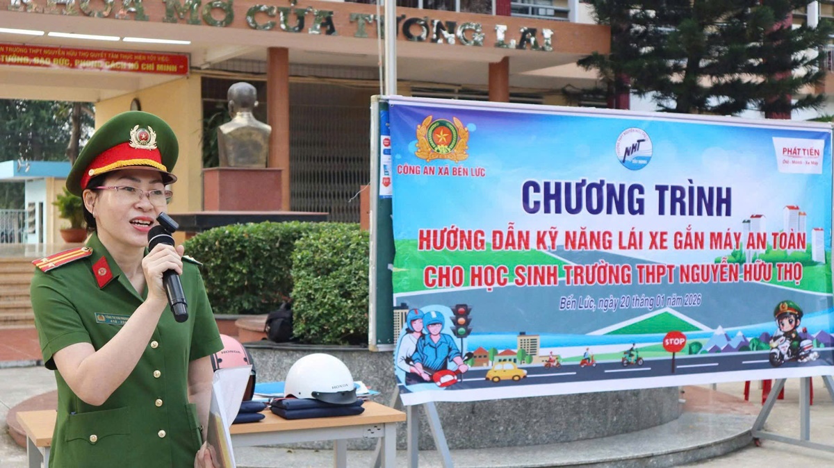 Thực hiện Kế hoạch phối hợp giữa Công an tỉnh và Sở Giáo dục và Đào tạo tỉnh Tây Ninh về việc hướng dẫn kỹ năng lái xe gắn máy an toàn cho học sinh trung học phổ thông, cơ sở giáo dục nghề nghiệp và giáo dục thường xuyên trên địa bàn, Công an xã Bến Lức phối hợp Honda Head Bến Lức tổ chức hướng dẫn kỹ năng lái xe gắn máy an toàn tại Trường THPT Nguyễn Hữu Thọ, THPT Nguyễn Trung Trực - Bến Lức với sự tham dự của 2.900 em học sinh và hơn 100 giáo viên, nhân viên nhà trường.