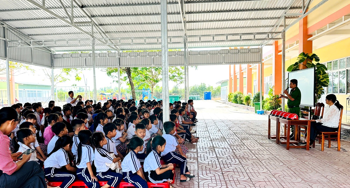 Sáng ngày 04/02/2026, tại Trường Tiểu học Nguyễn Văn Dinh, Công an xã Mộc Hóa phối hợp Ban Giám hiệu trường tổ chức buổi tuyên truyền, phổ biến pháp luật cho toàn thể cán bộ, giáo viên, nhân viên cùng 147 học sinh nhà trường.