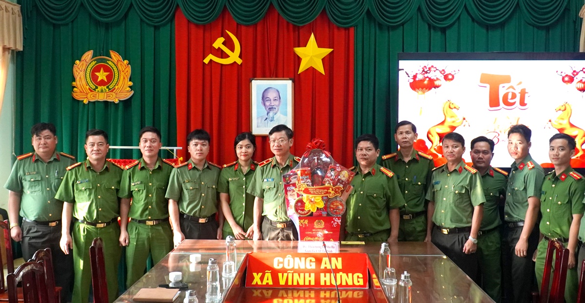 Tiếp đó, Đoàn công tác đến thăm, chúc Tết Công an xã Vĩnh Hưng. Thay mặt Đảng ủy, Ban Giám đốc Công an tỉnh, Thiếu tướng Vũ Như Hà ghi nhận, biểu dương những nỗ lực, cố gắng của tập thể cán bộ, chiến sĩ (CBCS) Công an xã trong công tác bảo đảm an ninh, trật tự tại cơ sở, nhất là trong thời điểm trước, trong và sau Tết Nguyên đán. Đồng chí đề nghị đơn vị tiếp tục nêu cao tinh thần trách nhiệm, bám sát địa bàn, chủ động nắm chắc tình hình, kịp thời tham mưu, giải quyết hiệu quả các vấn đề phát sinh, bảo đảm cho nhân dân vui Xuân, đón Tết an toàn, lành mạnh.
