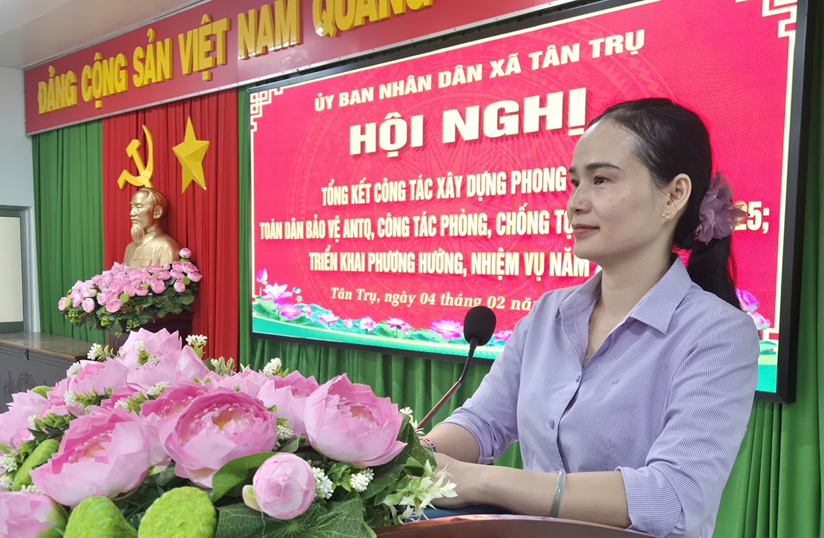 Dịp này, Chủ tịch UBND xã khen thưởng cho 03 tập thể và 10 cá nhân xã Tân Trụ có thành tích xuất sắc trong phong trào toàn dân bảo vệ ANTQ năm 2025. Hội nghị kết thúc trong không khí phấn khởi, thể hiện quyết tâm cao của lực lượng Công an xã Tân Trụ và các đơn vị liên quan trong công tác bảo vệ an ninh trật tự, đồng thời ghi nhận sự tham gia tích cực, hiệu quả của toàn thể Nhân dân xã Tân Trụ trong công tác đấu tranh phòng, chống tội phạm và xây dựng phong trào toàn dân bảo vệ an ninh Tổ quốc của địa phương./.