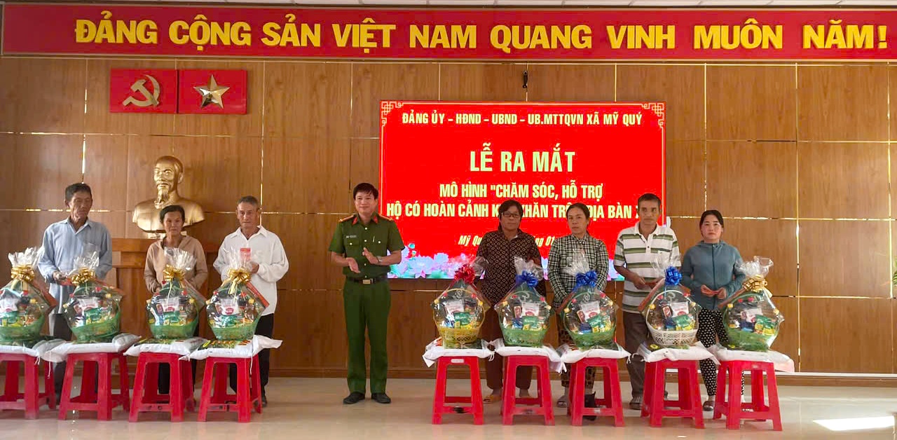 Song song với nhiệm vụ bảo đảm an ninh trật tự, Công an xã Mỹ Quý còn triển khai hiệu quả “mô hình chăm sóc, hỗ trợ các hộ gia đình có hoàn cảnh khó khăn trên địa bàn”. Mô hình mang ý nghĩa nhân văn sâu sắc, thể hiện tinh thần tương thân tương ái và trách nhiệm của lực lượng công an đối với cộng đồng. Thông qua việc rà soát, nắm bắt hoàn cảnh cụ thể của từng hộ để hỗ trợ kịp thời cho các gia đình neo đơn, hộ nghèo, hộ có hoàn cảnh đặc biệt khó khăn.