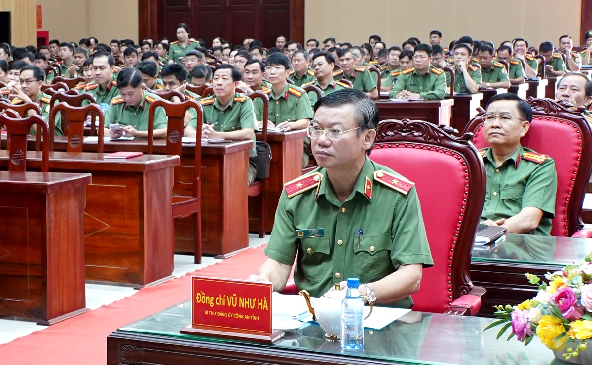 Dự hội nghị tại điểm cầu Công an tỉnh và Công an cấp xã có Thiếu tướng Vũ Như Hà, Ủy viên Ban Thường vụ Tỉnh ủy, Bí Thư Đảng ủy, Giám đốc Công an tỉnh, các đồng chí trong Ban thường vụ Đảng ủy, Ban Giám đốc Công an tỉnh, đảng viên cán bộ chiến sỹ Công an tỉnh.