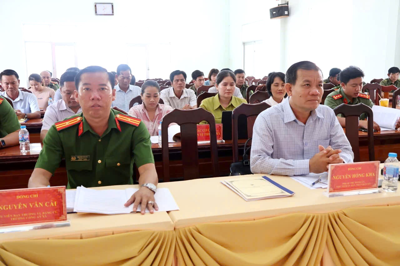 Đồng chí Nguyễn Hồng Kha – Phó Bí thư Đảng ủy, Chủ tịch UBND xã, Trưởng Ban Chỉ đạo phòng, chống tội phạm, tệ nạn xã hội và xây dựng phong trào toàn dân bảo vệ an ninh Tổ quốc xã chủ trì hội nghị; Thiếu tá Nguyễn Văn Cải - Trưởng Công an xã, Phó Ban thường trực Ban Chỉ đạo Phòng, chống tội phạm, tệ nạn xã hội và phong trào toàn dân bảo vệ an ninh Tổ quốc xã; cùng các đồng chí thành viên trong Ban Chỉ đạo, đại diện các cơ quan ban ngành, hiệu trưởng các Trường học trên địa bàn, cán bộ Công an xã và lực lượng ANTT cơ sở dự.