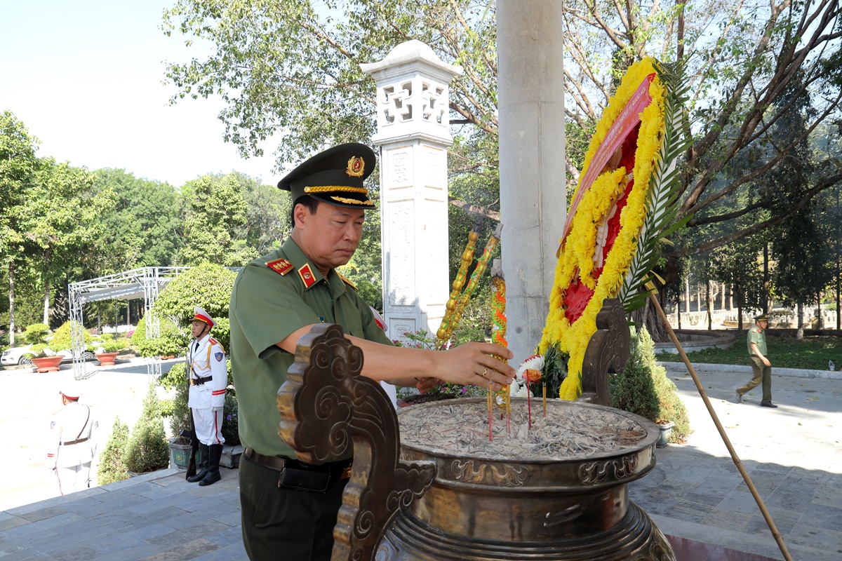Trong không khí trang nghiêm, đoàn đã dành phút mặc niệm bày tỏ sự tri ân sâu sắc đến các Anh hùng - Liệt sĩ đã hy sinh vì sự nghiệp giải phóng dân tộc, thống nhất đất nước. Đoàn đã dâng hương trước Tượng đài bảo vệ an ninh Tổ quốc, Bia Chiến thắng, nơi ghi danh hơn 14.000 cán bộ, chiến sĩ CAND Việt Nam đã anh dũng hy sinh vì độc lập dân tộc, thống nhất Tổ quốc; dâng hương trước Tượng đài Bác Hồ, Tượng đài cố Bộ trưởng Phạm Hùng tại Khu di tích lịch sử, văn hóa Ban An ninh Trung ương Cục miền Nam.