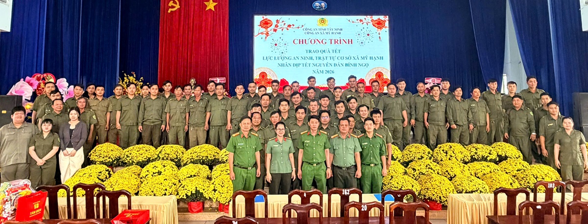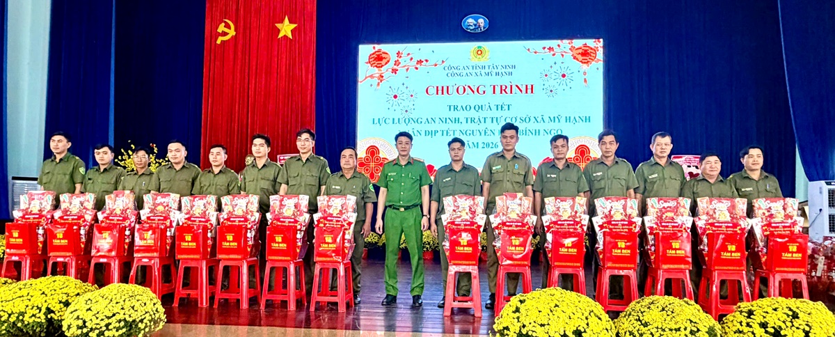 Nhân dịp Tết Nguyên đán Bính Ngọ năm 2026, Công an xã Mỹ Hạnh tổ chức thăm hỏi, tặng quà Tết cho 77 đồng chí là lực lượng tham gia bảo vệ an ninh, trật tự ở cơ sở trên địa bàn xã.