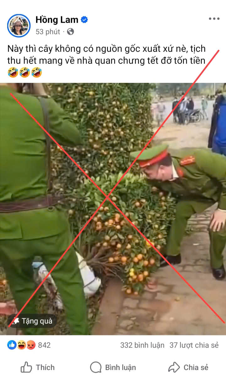 Thời gian gần đây, trên không gian mạng xuất hiện một số hình ảnh, thông tin sai sự thật, bôi nhọ hình ảnh của lực lượng Công an nhân dân, gây dư luận xấu trong xã hội. Đáng chú ý là hình ảnh lan truyền với nội dung xuyên tạc cho rằng “Lực lượng Công an tịch thu cây cảnh không có nguồn gốc xuất xứ”. Các hình ảnh, thông tin này đã nhanh chóng thu hút sự quan tâm, bình luận và chia sẻ của nhiều người dùng mạng xã hội.