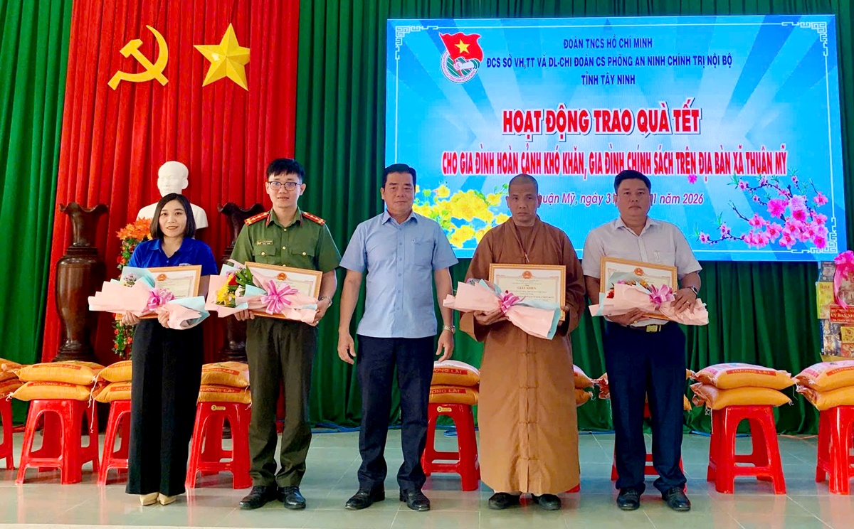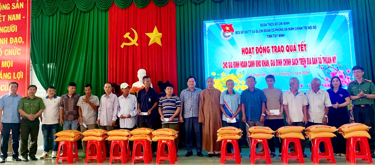 Nhằm thực hiện hiệu quả phong trào thi đua “Ba nhất” trong lực lượng Công an nhân dân do Đảng ủy - Ban Giám đốc Công an tỉnh phát động; phát huy tinh thần xung kích, tình nguyện, trách nhiệm xã hội, truyền thống cách mạng của tuổi trẻ; tổ chức có hiệu quả các hoạt động bảo đảm an sinh xã hội, tình nghĩa, tình nguyện, chung sức cùng cộng đồng gắn với nhiệm vụ bảo đảm an ninh, trật tự và xây dựng phong trào toàn dân bảo vệ an ninh Tổ quốc, Đảng ủy cơ sở Phòng An ninh chính trị nội bộ, Công an tỉnh Tây Ninh phối hợp Đảng ủy Sở Văn hóa, Thể thao và Du lịch tỉnh Tây Ninh; Đảng ủy xã Thuận Mỹ tổ chức cho cán bộ, đoàn viên thanh niên, hội viên phụ nữ thực hiện chương trình “Xuân tình nguyện” trên địa bàn xã Thuận Mỹ.