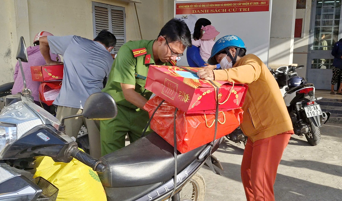 Mỗi phần quà không chỉ là sự sẻ chia vật chất mà còn là lời chúc mừng năm mới an vui của người chiến sĩ Công an tỉnh Tây Ninh gửi đến người dân. Qua đó nhằm chia sẻ khó khăn, động viên bà con đón Tết vui tươi, đầm ấm.