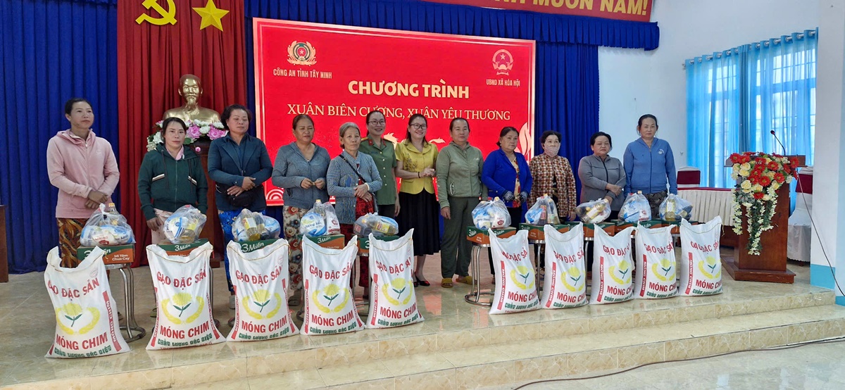Nhân dịp Tết Nguyên đán Bính Ngọ 2026, chiều ngày 10/02/2025, thừa uỷ quyền của Ban Giám đốc Công an tỉnh Tây Ninh, Phòng Công tác chính trị Công an tỉnh phối hợp cùng UBND xã Hoà Hội và UBND xã Ninh Điền tổ chức chương trình “Xuân biên cương, xuân yêu thương” trao tặng quà cho các hộ nghèo, gia đình chính sách trên địa bàn. Dự chương trình có Thượng tá Nguyễn Thị Thu Hiền - Phó Trưởng Phòng Công tác chính trị Công an tỉnh.