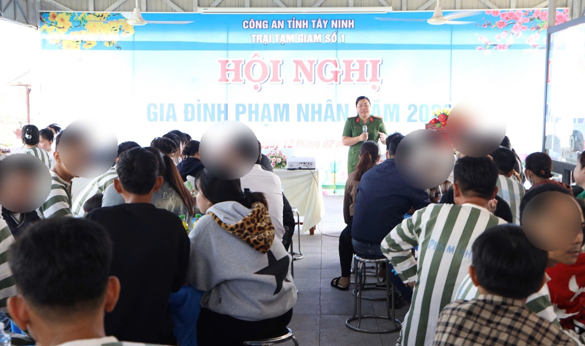 Ngày 12/02/2026, Trại tạm giam số 1, Công an tỉnh Tây Ninh tổ chức thành công “Hội nghị gia đình phạm nhân năm 2026”. Hội nghị do đồng chí Thượng tá Nguyễn Thị Hồng Vân, Phó Giám thị Trại Tạm giam số 1, Công an tỉnh chủ trì. Đây là hoạt động có ý nghĩa sâu sắc, mang tính nhân văn, đồng thời góp phần nâng cao hiệu quả công tác quản lý, giáo dục, cải tạo phạm nhân, giúp họ yên tâm cải tạo tốt, sớm hoàn lương và chuẩn bị tái hòa nhập cộng đồng.