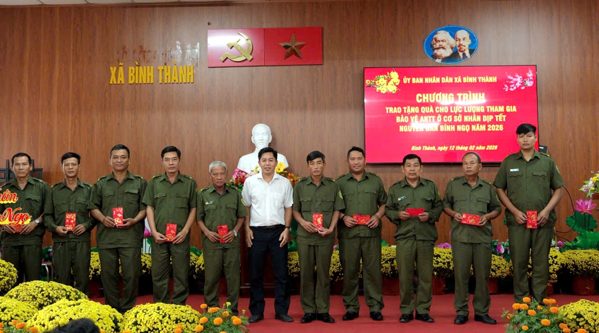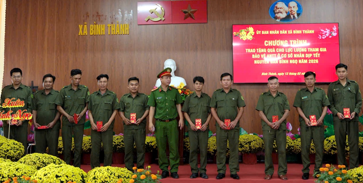 Ngày 12/02/2026 Công an xã Bình Thành tổ chức Hội nghị tổng kết hoạt động của lực lượng tham gia bảo vệ ANTT ở cơ sở năm 2025, triển khai nhiệm vụ năm 2026. Dự Hội nghị có đồng chí Võ Quốc Toản - Ủy viên Ban thường vụ Đảng ủy, Phó Chủ tịch UBND xã Bình Thành; Trung tá Trần Quốc Qui - Bí thư Chi bộ, Trưởng Công an xã cùng chỉ huy và cán bộ chiến sỹ Công an xã.