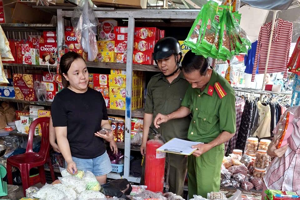 Công an xã Thạnh Đức kiểm tra an toàn PCCC tại các chợ trên địa bàn