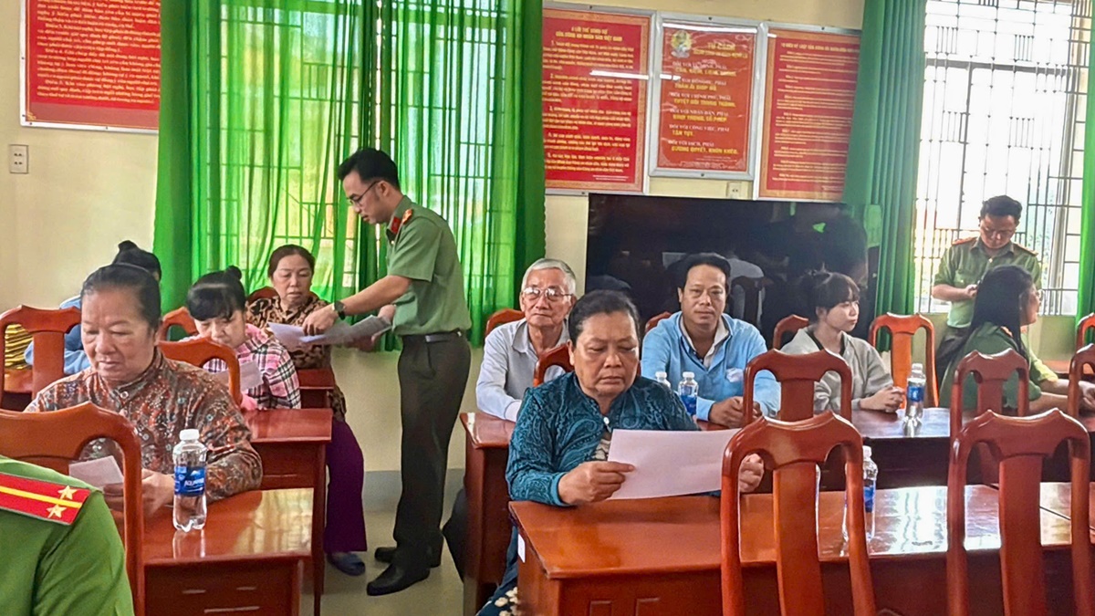 Theo đó, Đoàn Thanh niên, Hội Phụ nữ Phòng Tham mưu Công an tỉnh Tây Ninh phối hợp cùng Đoàn Thanh niên Công an xã Mỹ Thạnh tổ chức tuyên truyền, phổ biến, giáo dục pháp luật cho người dân tại địa phương. Nội dung tuyên truyền tập trung vào các quy định pháp luật liên quan đến an ninh trật tự ở cơ sở; phương thức, thủ đoạn hoạt động của các loại tội phạm; kỹ năng phòng ngừa tội phạm, tệ nạn xã hội; nâng cao ý thức chấp hành pháp luật và tinh thần cảnh giác trong Nhân dân.