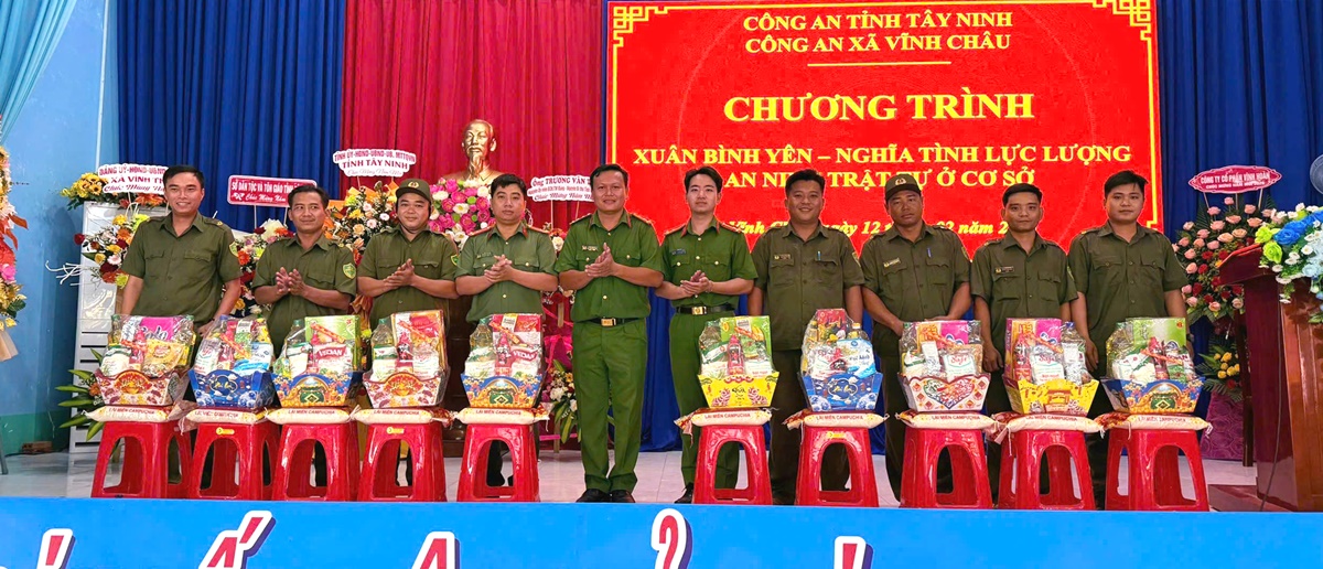 Bên cạnh các hoạt động hướng về cộng đồng, Công an xã Vĩnh Châu cũng đã tổ chức chương trình “Xuân bình yên – Nghĩa tình lực lượng An ninh trật tự ở cơ sở” nhằm kịp thời động viên, khích lệ tinh thần lực lượng nòng cốt tại địa phương. Tại buổi gặp mặt, Công an xã đã trao tặng 62 phần quà Tết (gồm gạo và nhu yếu phẩm) cho các thành viên lực lượng tham gia bảo vệ ANTT ở cơ sở. Đại diện Ban chỉ huy Công an xã đã ghi nhận, biểu dương tinh thần trách nhiệm của các đồng chí – những "cánh tay nối dài" đã không quản ngại khó khăn, sát cánh cùng lực lượng Công an xã giữ gìn bình yên cho từng đường làng, ngõ xóm.