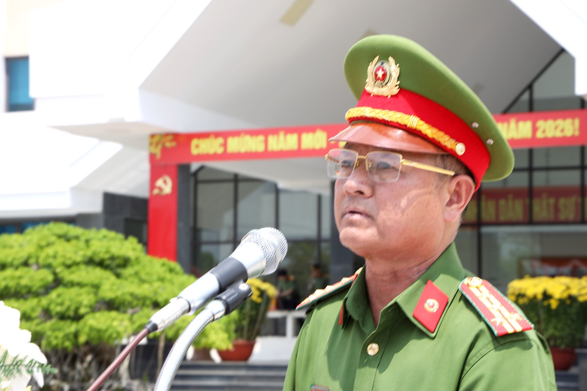 Đại tá Trần Văn Luận - Phó Giám đốc Công an tỉnh phát biểu tại buổi lễ.