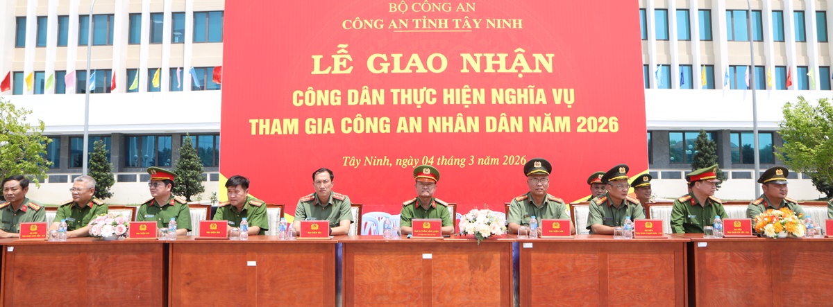 Ngày 04/3/2026, Công an tỉnh Tây Ninh tổ chức lễ giao, nhận công dân thực hiện nghĩa vụ tham gia CAND năm 2026. Đại tá Trần Văn Luận - Phó Giám đốc Công an tỉnh chủ trì buổi lễ. Tham dự buổi lễ, có lãnh đạo các Cục nghiệp vụ nhận quân, các đơn vị nghiệp vụ Công an tỉnh và Chỉ huy Công an các xã, phường.
