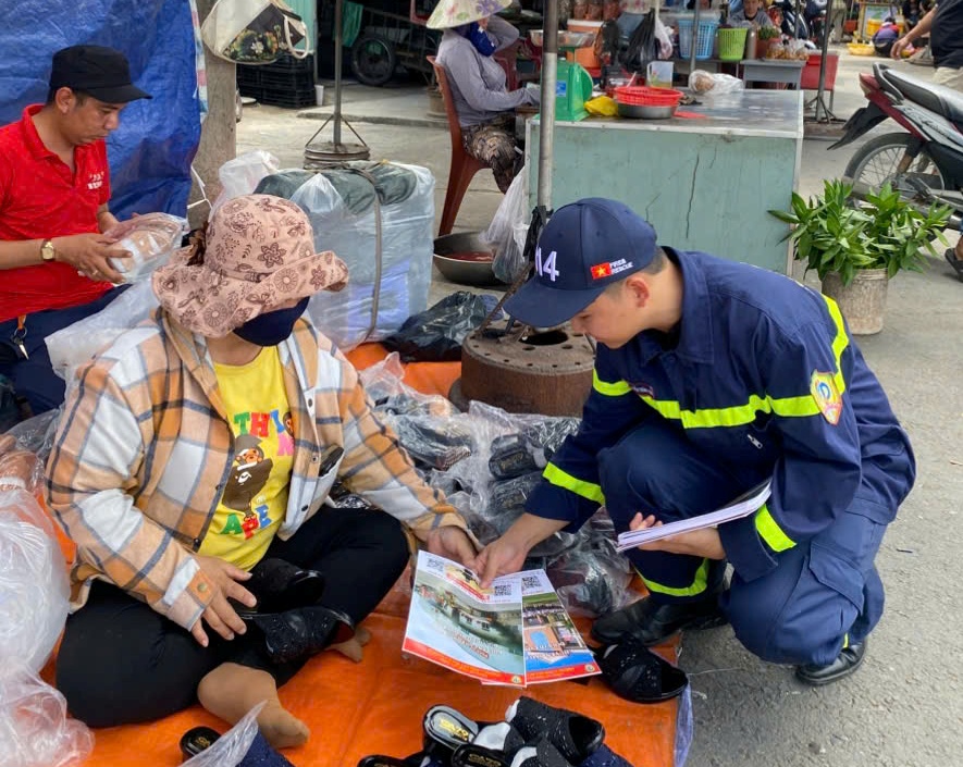 Lực lượng Cảnh sát PCCC và CNCH Công an tỉnh phát tờ rơi hướng dẫn cơ sở kinh doanh nâng cao ý thức PCCC; bố trí lực lượng ứng trực tại khu vực cầu Phan Văn Đạt để sẵn sàng xử lý các tình huống khi có sự cố xảy ra.