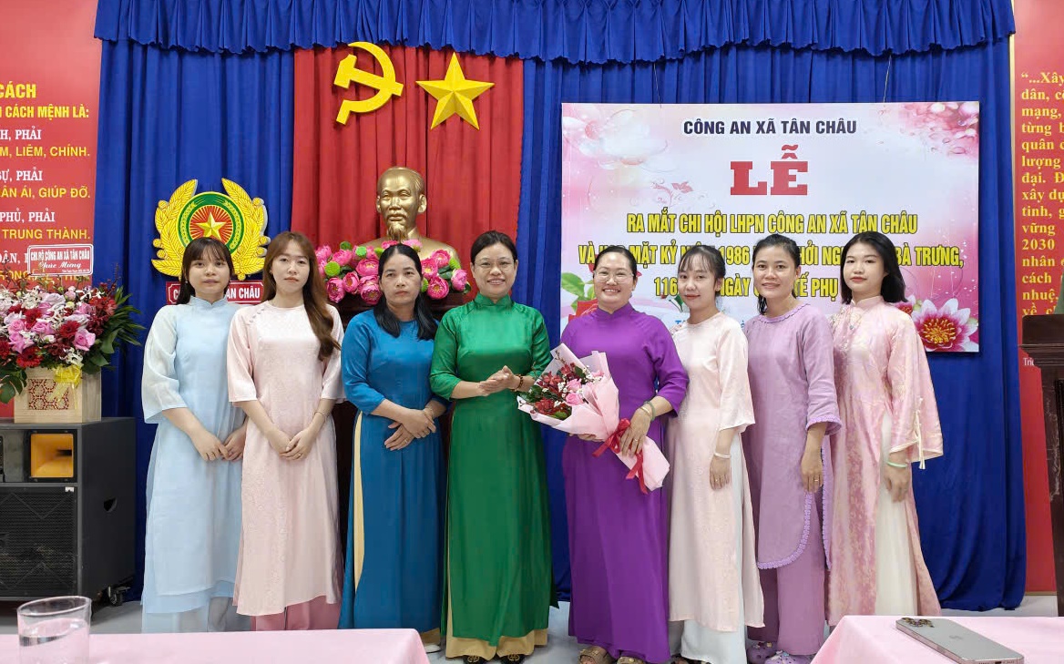 Sáng ngày 06/3/2026, Công an xã Tân Châu đã Tổ chức Lễ ra mắt Chi Hội phụ nữ Công an xã nhân ngày Quốc tế Phụ nữ 08/03/2026, đến dự có Đồng chí Nguyễn Thị Thúy Hằng - Phó Chủ tịch thường trực MTTQ Việt Nam xã, Chủ tịch Hội LHPN xã Tân Châu và đồng chí Trung tá Bùi Văn Thanh - Phó Bí thư Chi bộ, Phó trưởng Công an xã Tân Châu.