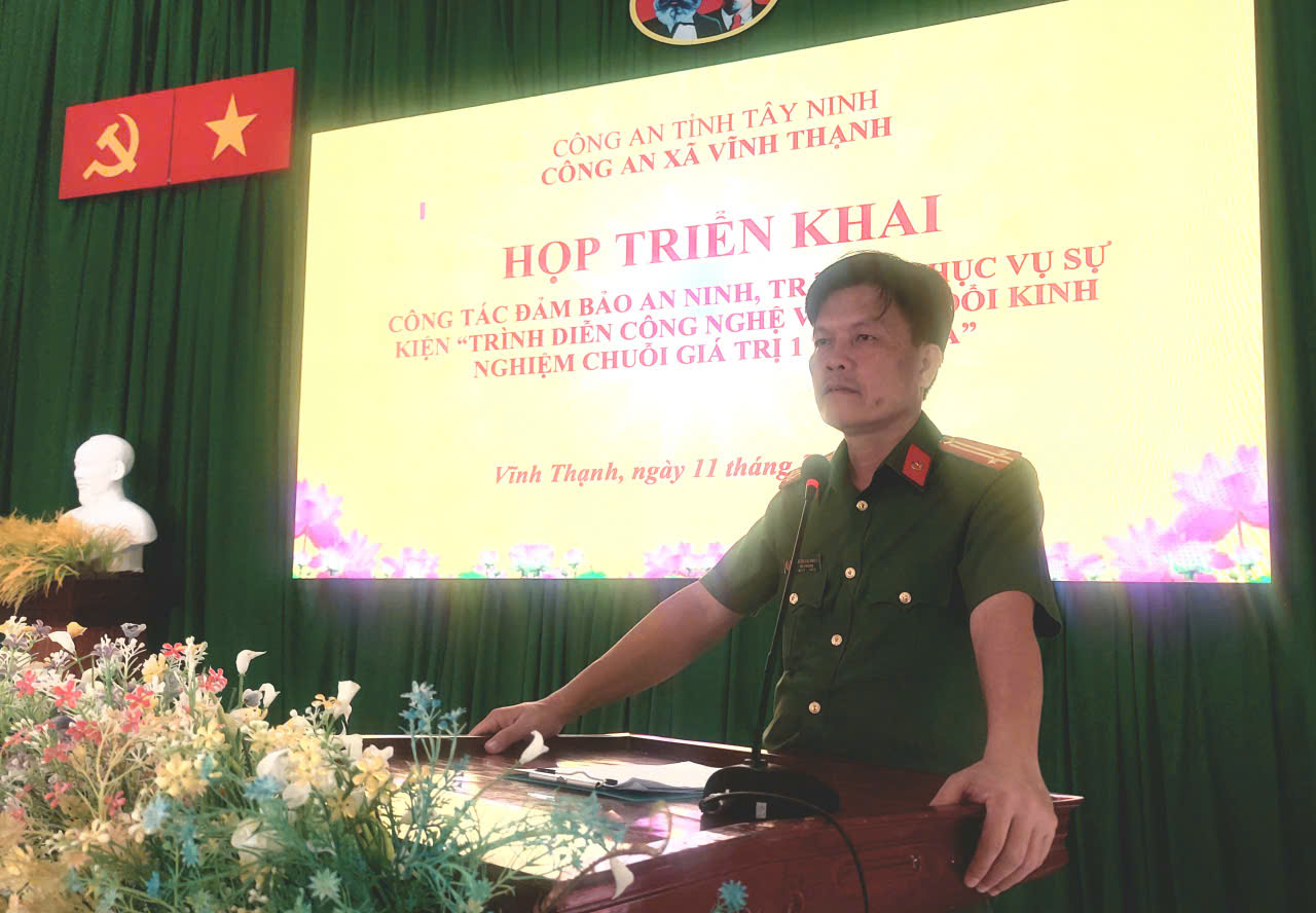 Tại hội nghị, Trung tá Nguyễn Giải Phóng - Phó Trưởng Công an xã đã phổ biến, quán triệt các nội dung trọng tâm trong kế hoạch bảo đảm ANTT sự kiện, phân công bố trí lực lượng tại các điểm bảo vệ nhằm chủ động phòng ngừa, phát hiện và xử lý kịp thời các hành vi vi phạm pháp luật, bảo vệ tuyệt đối an toàn sự kiện diễn ra trên địa bàn xã Vĩnh Thạnh.