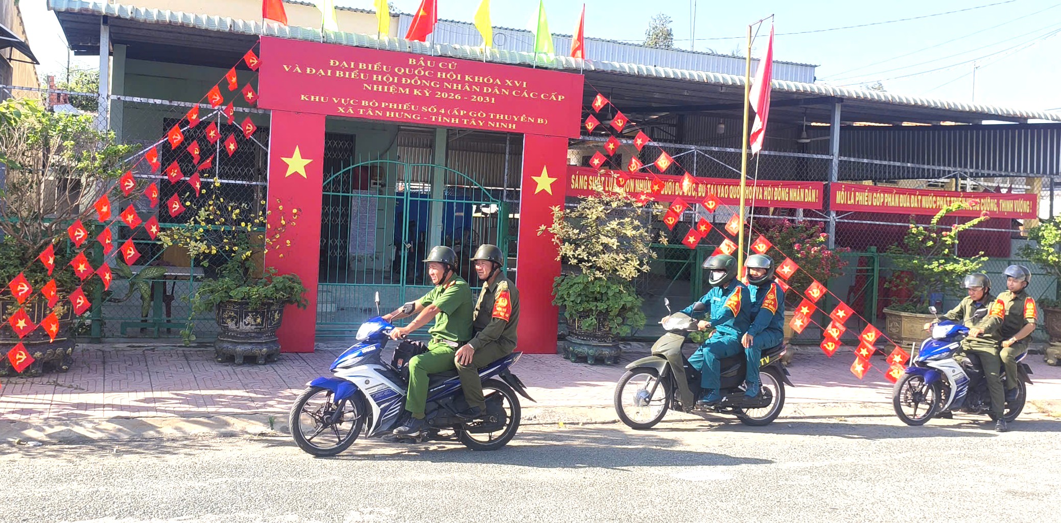 Trong thời gian trước, trong và sau ngày bầu cử, lực lượng Công an xã phối hợp chặt chẽ với Ban Chỉ huy Quân sự xã tổ chức tuần tra khép kín địa bàn mỗi ngày 03 ca, tập trung vào các khung giờ cao điểm; triển khai các biện pháp bảo đảm an ninh tại các mục tiêu trọng điểm, khu vực niêm yết danh sách cử tri, danh sách ứng cử viên, địa điểm bỏ phiếu và các tuyến đường trọng điểm.
