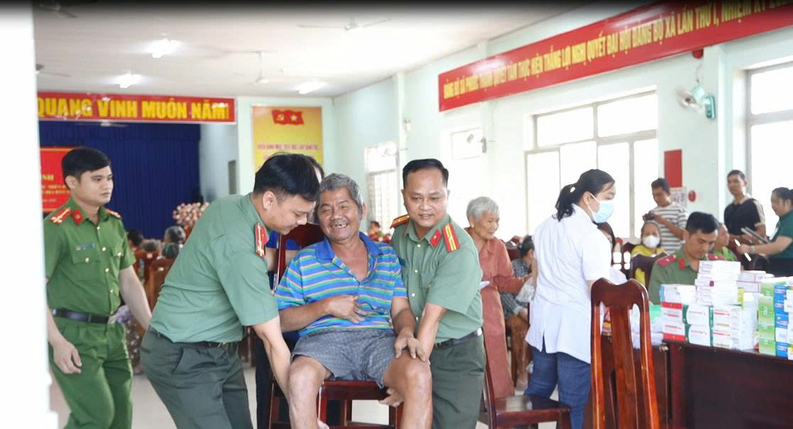 Công an Tây Ninh phối hợp bệnh viện mắt Sài Gòn, Tây Ninh tham gia khám bệnh cho người dân trên địa bàn tỉnh.