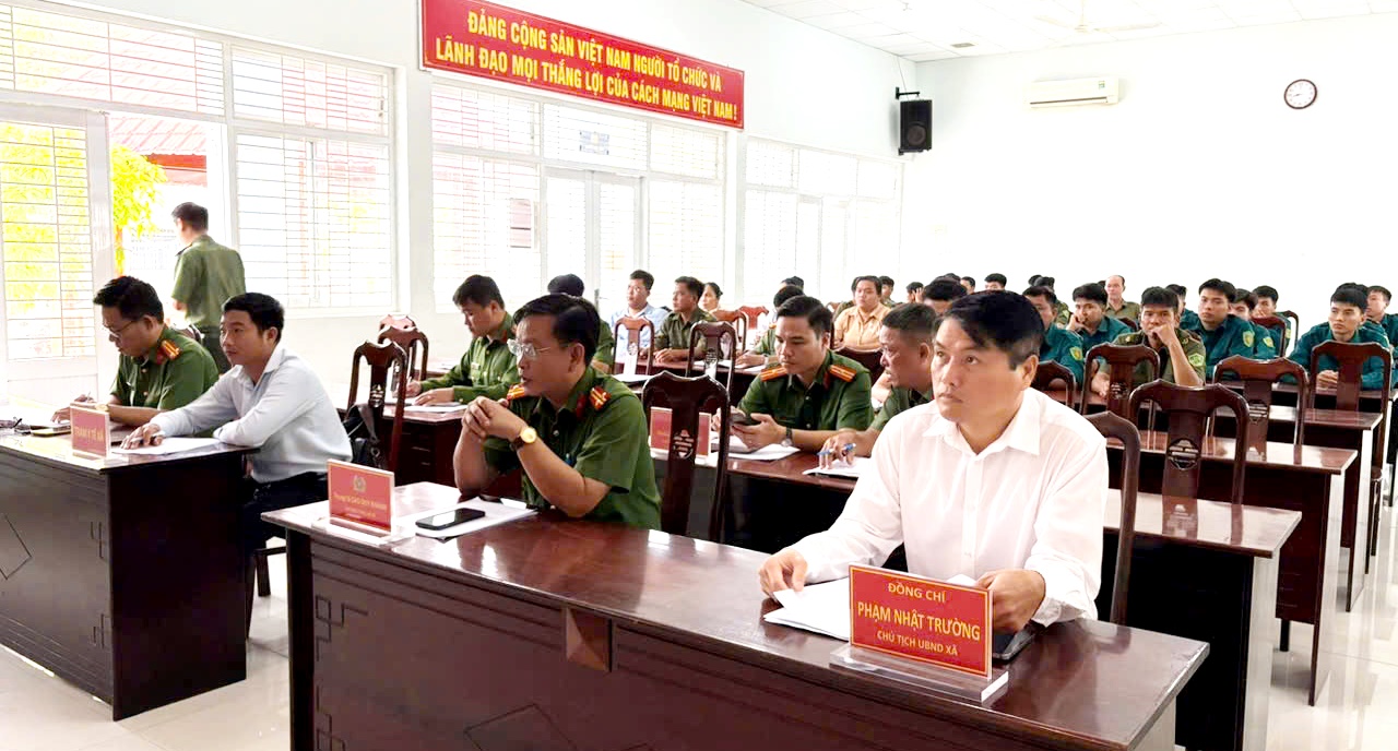Đến dự và chỉ đạo hội nghị có đồng chí Phạm Nhật Trường - Phó Bí thư Đảng ủy, Chủ tịch UBND xã, tham dự Hội nghị có các đồng chí Trung úy Mai Phát Huy - Chỉ huy phó BCH Quân sự xã, về phía Công an xã có Trung tá Cao Duy Khánh - UV. BTV Đảng ủy, Trưởng Công an xã cùng Ban Chỉ huy, cán bộ, chiến sĩ Công an xã; lực lượng Quân sự xã; Tổ trưởng 12 Tổ bầu cử trên địa bàn và lực lượng tham gia bảo vệ an ninh, trật tự ở cơ sở xã.