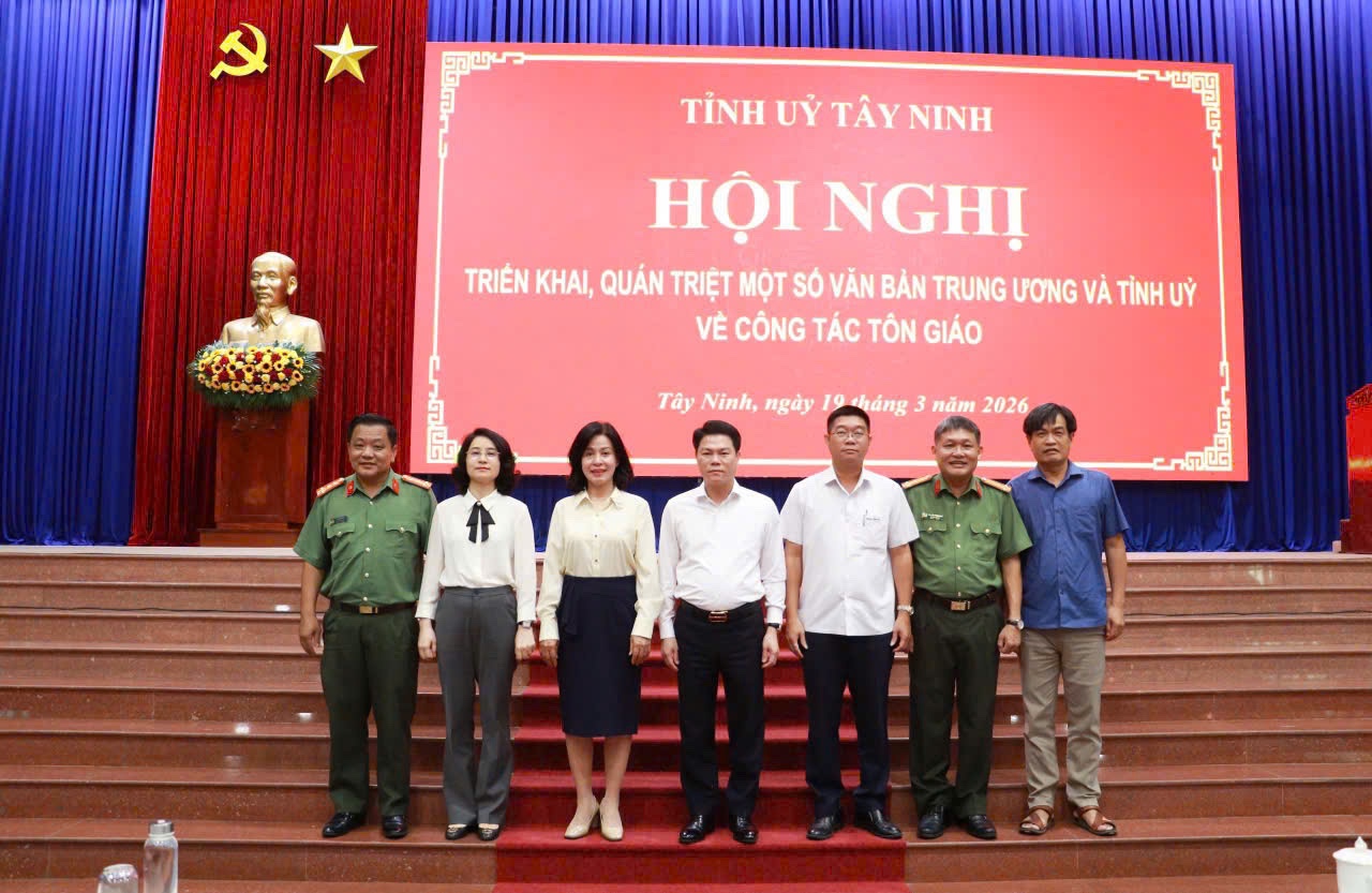 Trong 02 ngày 19/3 và 20/3/2026, tại Hội trường Thống nhất (số 61, đường Nguyễn Huệ, phường Long An) và Hội trường A (số 04, đường Nguyễn Thái Học, phường Tân Ninh), Công an tỉnh Tây Ninh đã phối hợp với Ban Tuyên giáo và Dân vận Tỉnh ủy, Cục An ninh nội địa - Bộ Công an tổ chức Hội nghị quán triệt, triển khai các văn bản của Trung ương và báo cáo chuyên đề nâng cao hiệu quả công tác bảo đảm An ninh nội địa trên địa bàn tỉnh Tây Ninh.