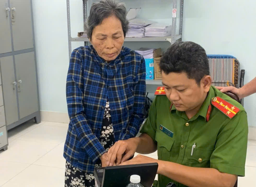 Thiếu tá Võ Minh Thiện - Cán bộ tổ CSKV hỗ trợ đón rước người dân đến tận nơi làm thẻ Căn cước.