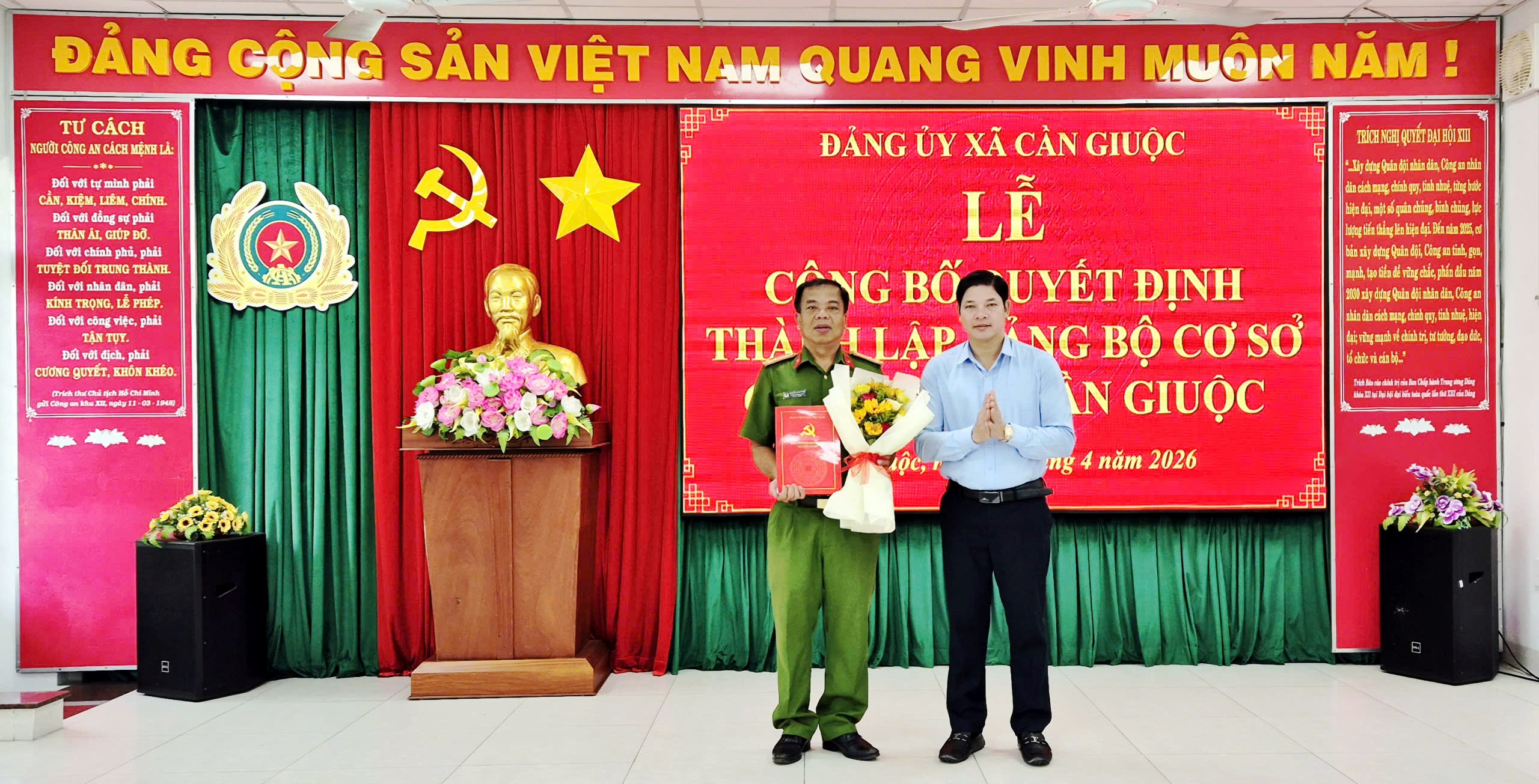 Ngày 07/4/2026, Đảng ủy xã Cần Giuộc long trọng tổ chức Lễ công bố Quyết định thành lập Đảng bộ Công an xã. Đồng chí Phạm Văn Bốn - Tỉnh ủy viên, Bí thư Đảng ủy, Chủ tịch HĐND xã chủ trì buổi lễ.