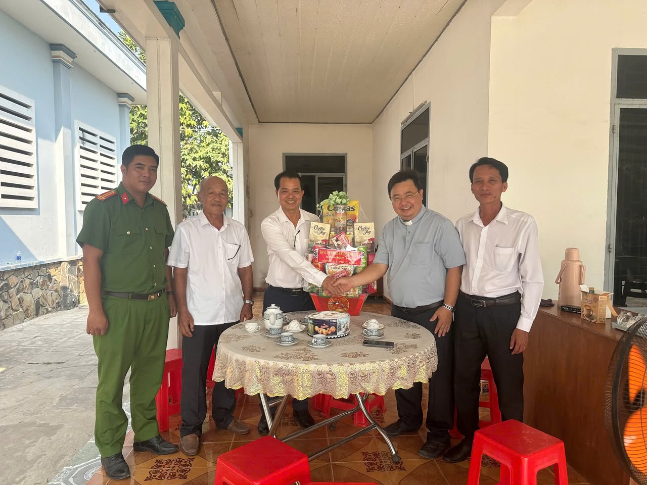 Đoàn công tác tặng quà và chúc mừng Lễ Phục sinh cho cơ sở tôn giáo trên địa bàn xã.