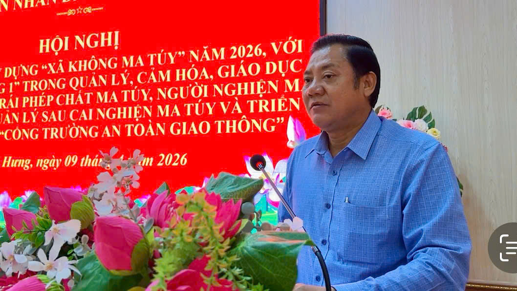Chiều ngày 09/4/2026, UBND xã Tân Hưng tổ chức Hội nghị triển khai xây dựng “Xã không ma túy” năm 2026, gắn với triển khai mô hình “2 cộng 1” trong quản lý, cảm hoá, giáo dục người dử dụng trái phép chất ma tuý, người nghiện ma tuý, người quản lý sau cai nghiện ma tuý. Đồng chí Phan Hoà Nông, Chủ tịch UBND xã chủ trì Hội nghị.