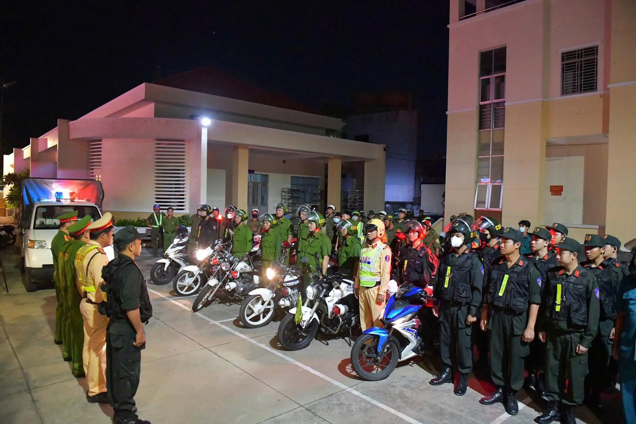 Ảnh: Lực lượng Cảnh sát cơ động phối hợp các đơn nghiệp vụ trước giờ ra quân cao điểm đảm bảo ANTT, ATGT