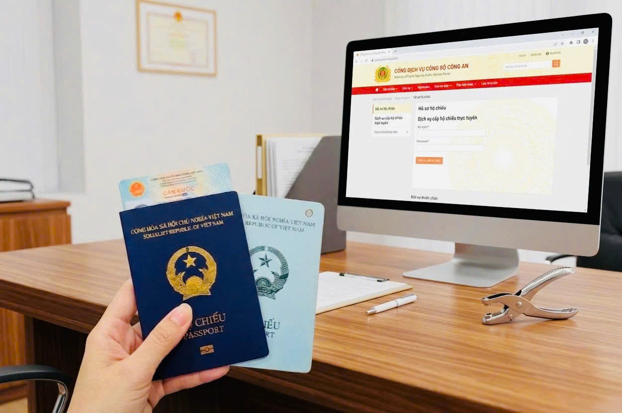 Nhận lại hộ chiếu cũ tại chỗ sau khi nhận hộ chiếu mới, hộ chiếu cũ sẽ được Phòng Quản lý xuất nhập cảnh đục lỗ (hủy giá trị sử dụng) và trả lại ngay cho công dân. Việc này giúp người dân giữ lại được các dấu mộc visa, lịch sử di chuyển quan trọng để phục vụ việc chứng minh hồ sơ với đại sứ quán các nước nếu cần thiết. Để thực hiện thủ tục cấp hộ chiếu phổ thông trên Cổng dịch vụ công, công dân chuẩn bị thiết bị có kết nối Internet (điện thoại thông minh, máy tính), tài khoản VNeID mức độ 2, ảnh chân dung mới chụp (cỡ 4x6cm, phông nền trắng, mắt nhìn thẳng, không đeo kính) và làm theo các bước sau: