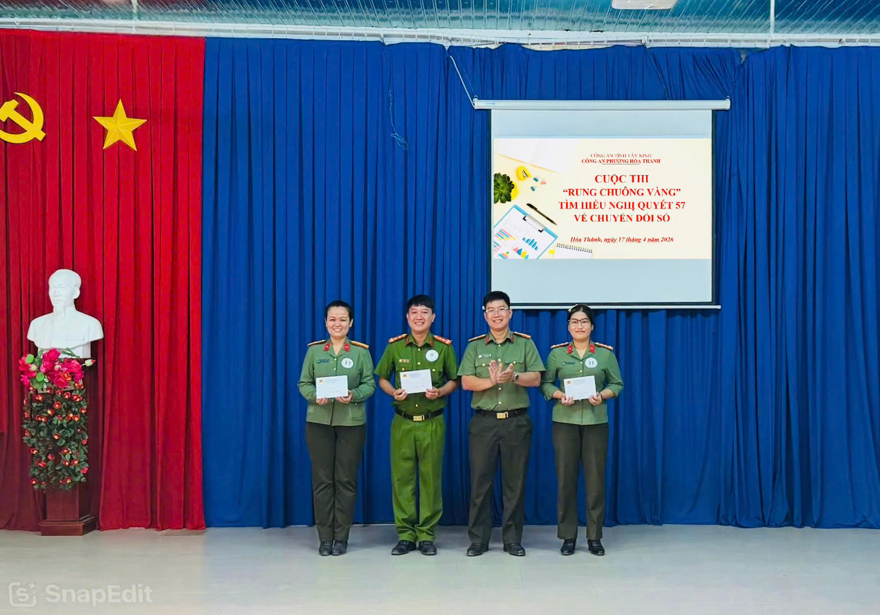 Vừa qua, Công an phường Hòa Thành đã chủ trì tổ chức Cuộc thi “Rung chuông vàng” tìm hiểu Nghị quyết 57-NQ/TW về đột phá phát triển khoa học, công nghệ, đổi mới sáng tạo và chuyển đổi số quốc gia.