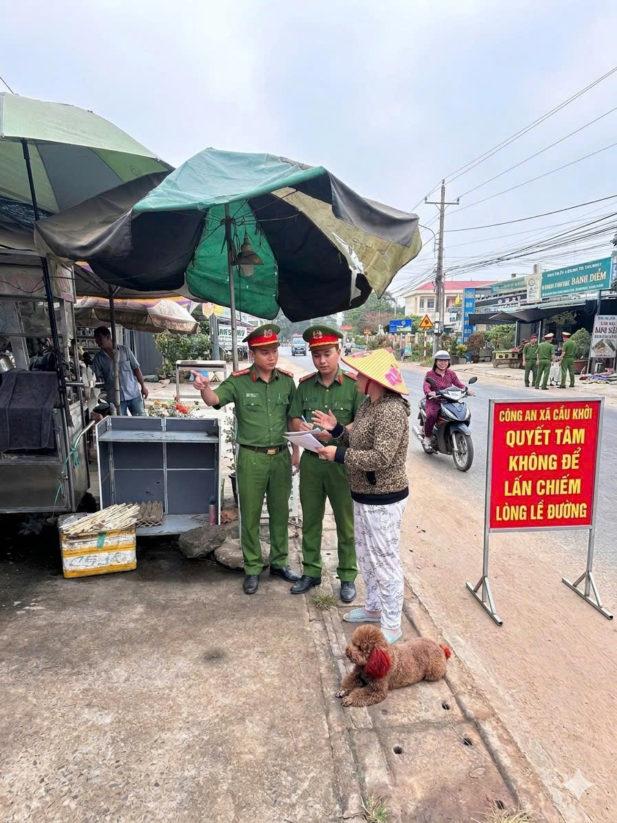 Công an xã Cầu Khởi tuyên truyền an toàn giao thông, kiểm tra và chấn chỉnh vi phạm lấn chiếm lòng, lề đường