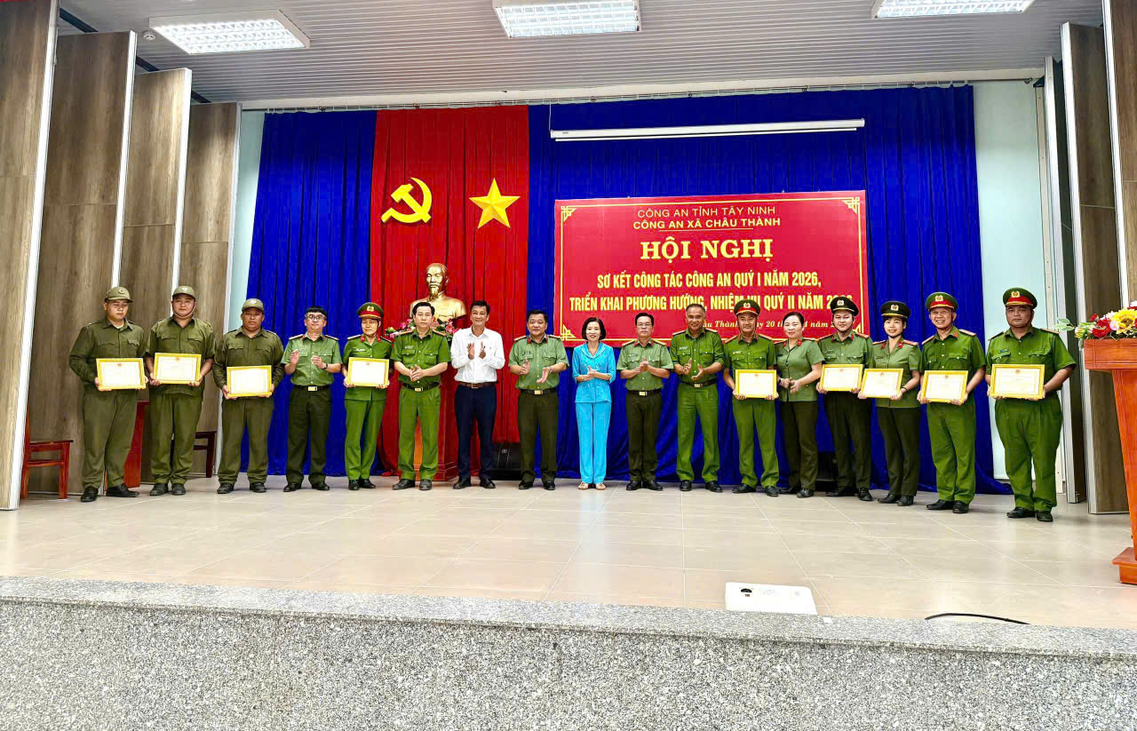 Mới đây, Công an xã Châu Thành tổ chức Hội nghị sơ kết công tác Công an Quý I năm 2026 và triển khai phương hướng, nhiệm vụ quý 2 năm 2026. Đến dự và chỉ đạo hội nghị có Đại tá Lê Văn Thuận - Phó Giám đốc Công an tỉnh; Bà Võ Thị Ánh Hậu - Phó Bí thư, Chủ tịch UBND xã Châu Thành. Thượng tá Dương Tấn Toàn - Trưởng Công an xã chủ trì.