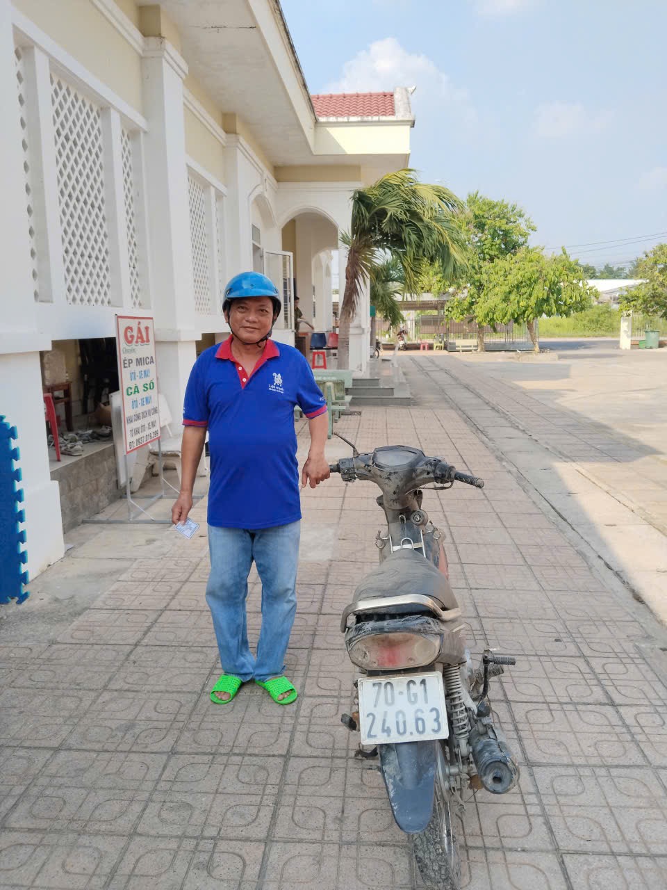 Ông Võ Văn Dư nhận lại xe mô tô của mình tại Công an phường Thanh Điền