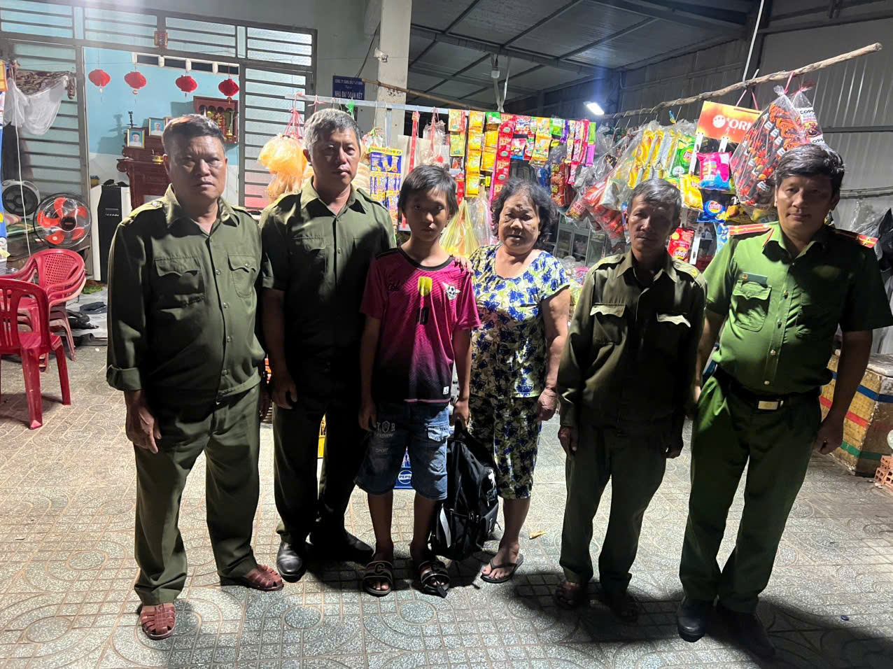 Tại trụ sở Công an xã, do có tâm lý hoảng sợ, cháu bé tỏ ra khá rụt rè nên các cán bộ, chiến sĩ Công an xã Ninh Điền đã ân cần thăm hỏi, động viên và cho cháu ăn uống để trấn an tinh thần.