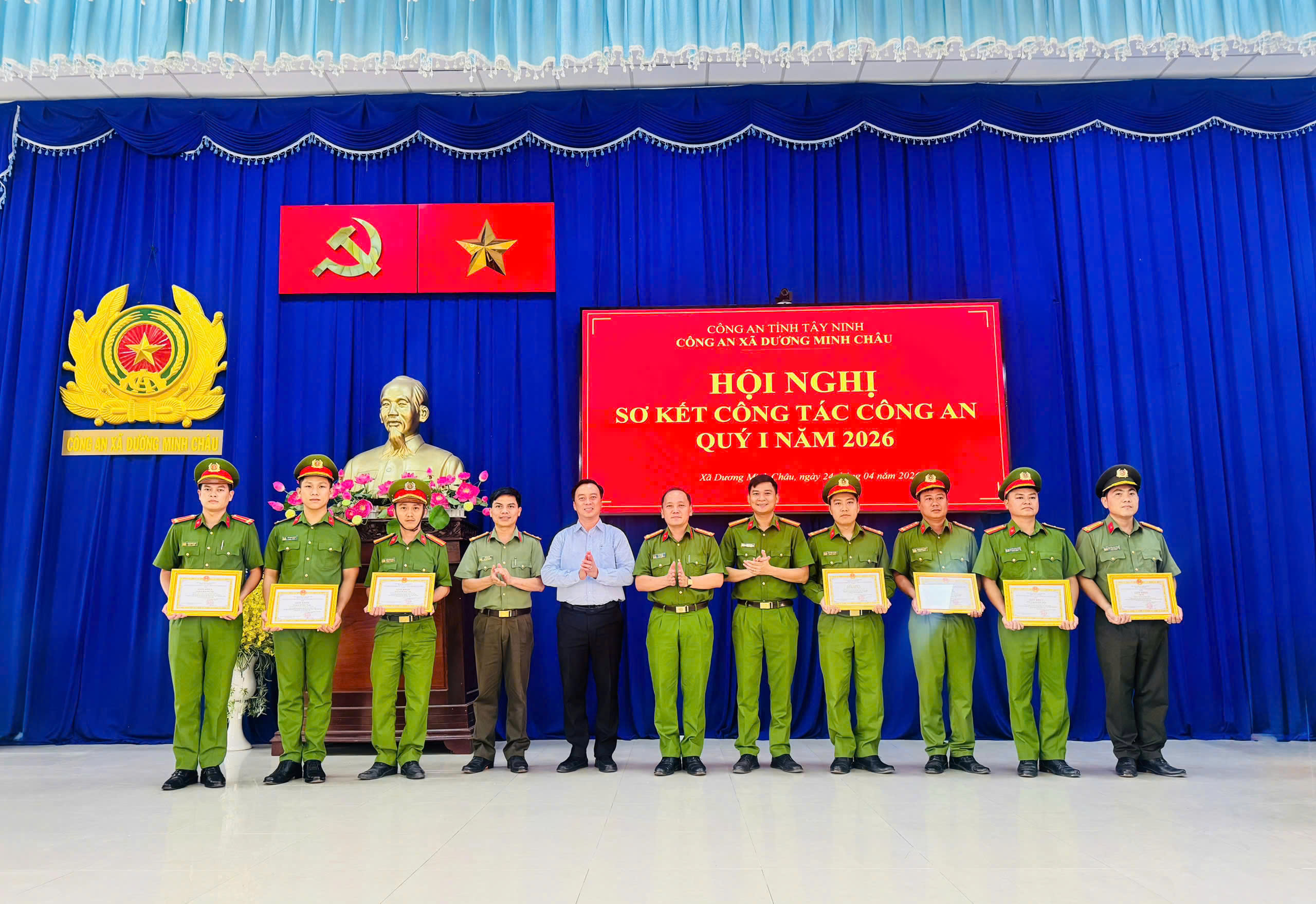 Chiều ngày 24/4/2026, Công an xã Dương Minh Châu (tỉnh Tây Ninh) đã tổ chức Hội nghị sơ kết công tác Quý I và triển khai nhiệm vụ trọng tâm Quý II/2026. Đến dự và chỉ đạo hội nghị có đồng chí Đại tá Lê Trung Ái, Phó Giám đốc Công an tỉnh Tây Ninh; đồng chí Đinh Thế Trọng, Chủ tịch UBND xã Dương Minh Châu cùng đại diện các phòng nghiệp vụ Công an tỉnh.