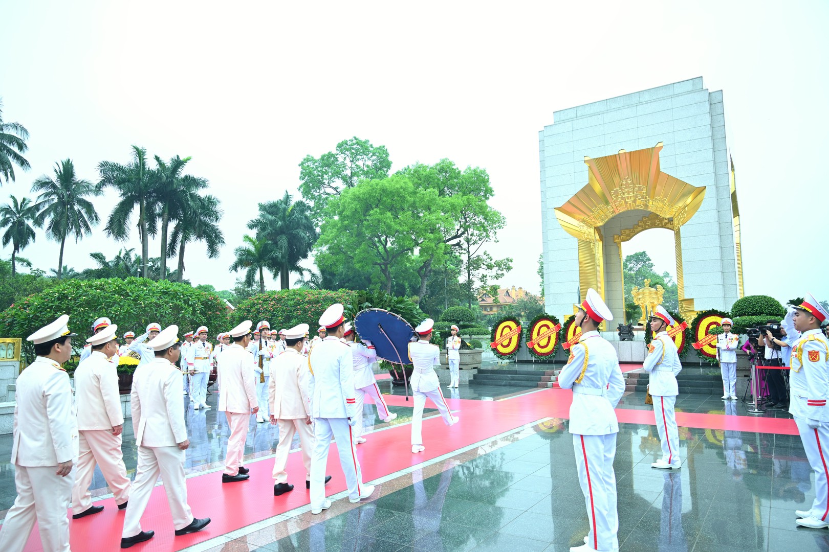 Đoàn đại biểu Đảng ủy Công an Trung ương, Bộ Công an đặt vòng hoa tưởng niệm các Anh hùng Liệt sỹ tại Đài tưởng niệm các Anh hùng Liệt sỹ.