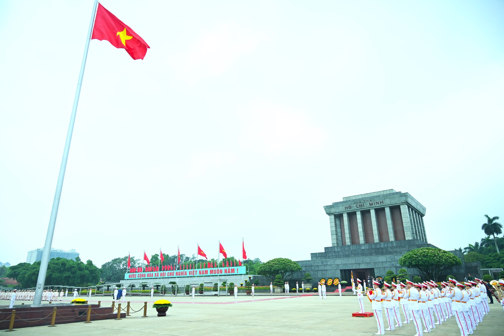 Vòng hoa của Đoàn mang dòng chữ: “Đời đời nhớ ơn Chủ tịch Hồ Chí Minh vĩ đại”.