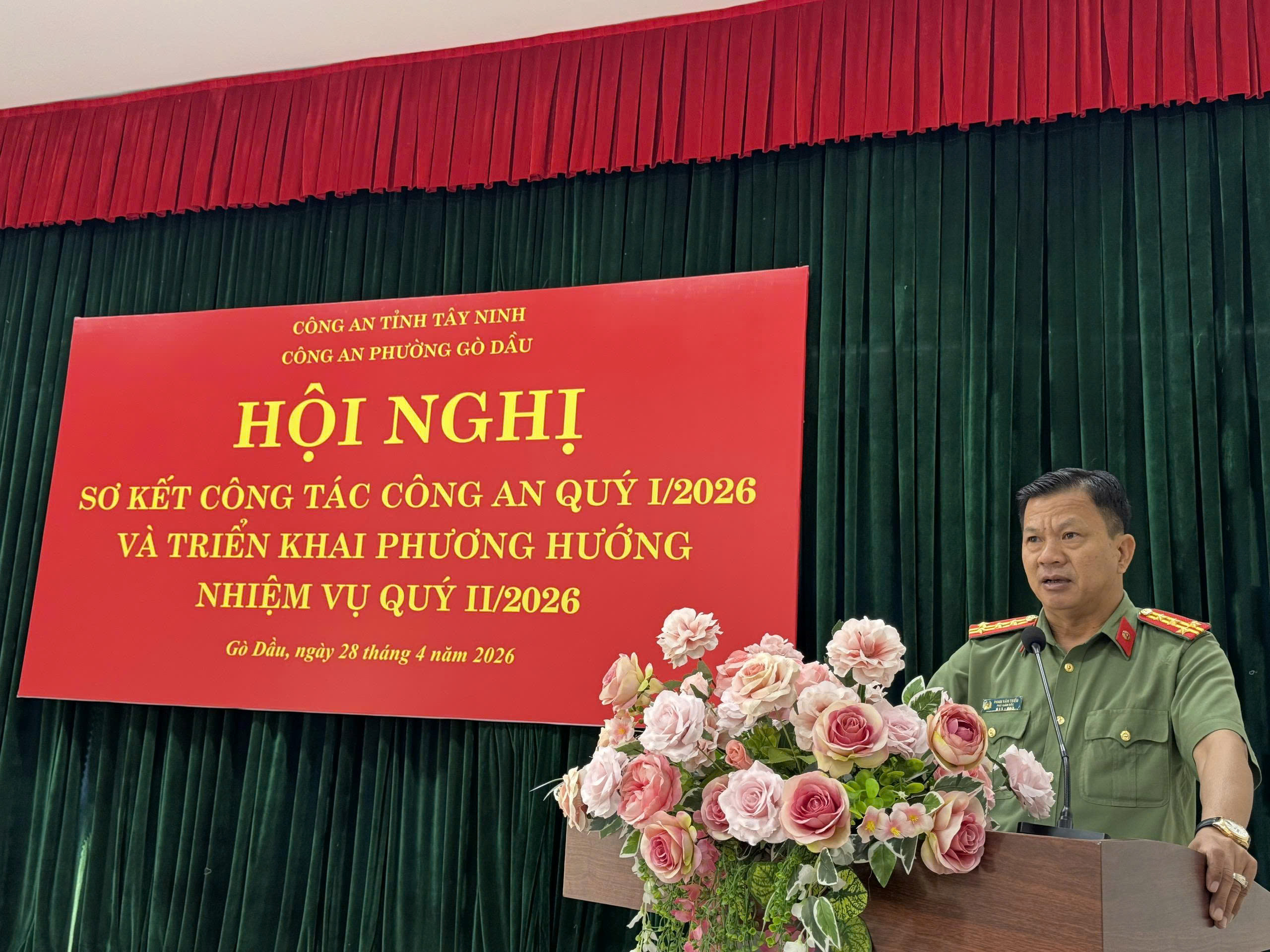 Phát biểu chỉ đạo tại Hội nghị, đồng chí Đại tá Phan Văn Triều, Phó Giám đốc Công an tỉnh ghi nhận, biểu dương những kết quả mà Công an phường Gò Dầu đã đạt được trong quý I năm 2026, đồng thời, yêu cầu trong thời gian tới, lực lượng Công an phường tiếp tục phát huy vai trò nòng cốt trong công tác bảo đảm an ninh, trật tự; chủ động nắm chắc tình hình, không để bị động, bất ngờ; tăng cường các biện pháp phòng ngừa, đấu tranh với các loại tội phạm và tệ nạn xã hội; nâng cao hiệu quả công tác quản lý nhà nước về an ninh, trật tự, thực hiện có hiệu quả phong trào thi đua Ba nhất “Kỷ luật nhất, Trung thành nhất, Gần dân nhất”, tiếp tục tăng cường phối hợp với các ban, ngành, đoàn thể, góp phần giữ vững ổn định chính trị, trật tự an toàn xã hội, phục vụ phát triển kinh tế - xã hội tại địa phương.